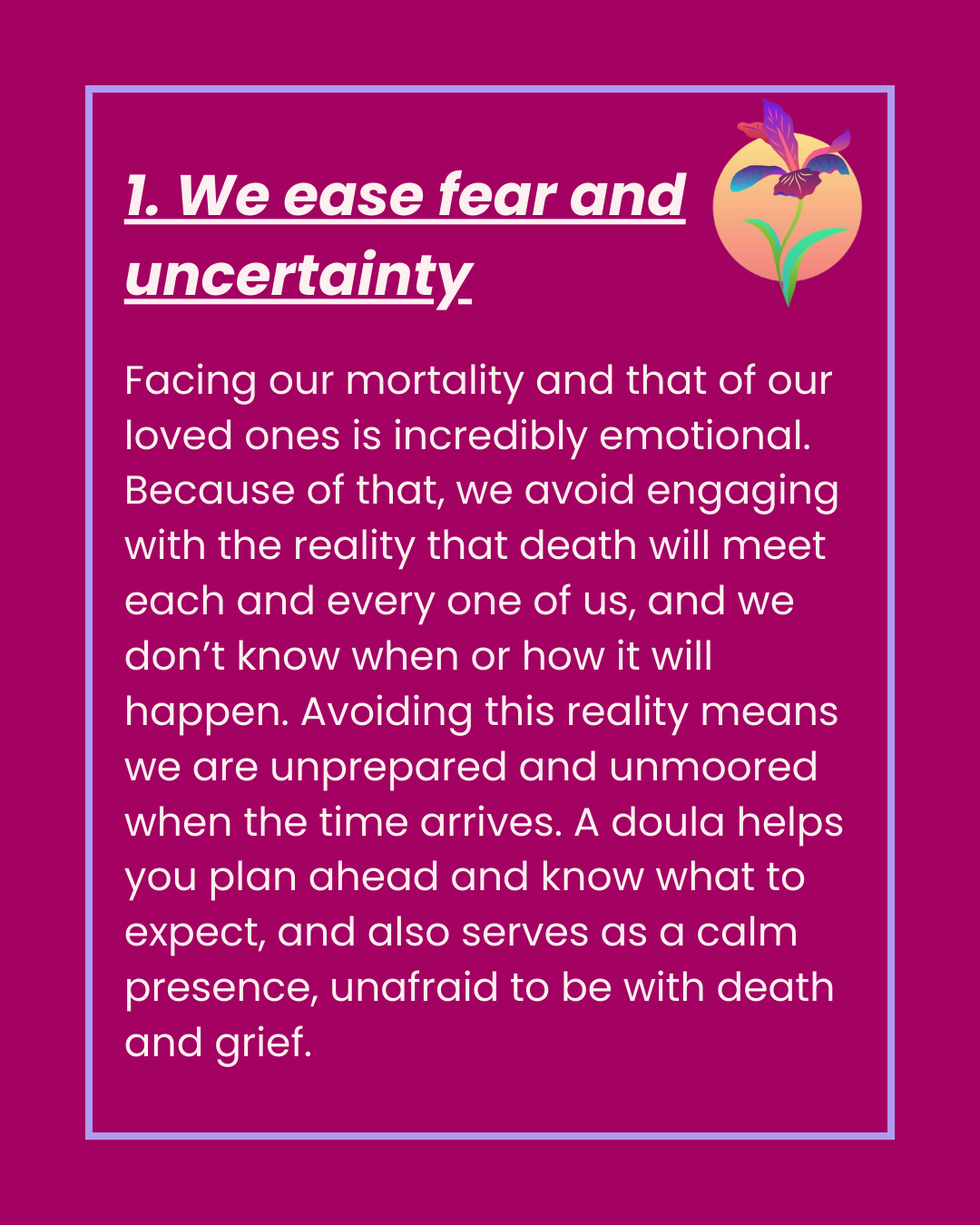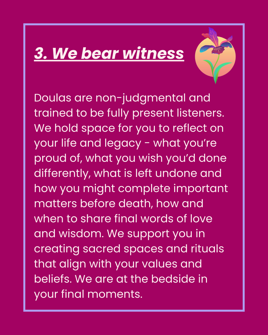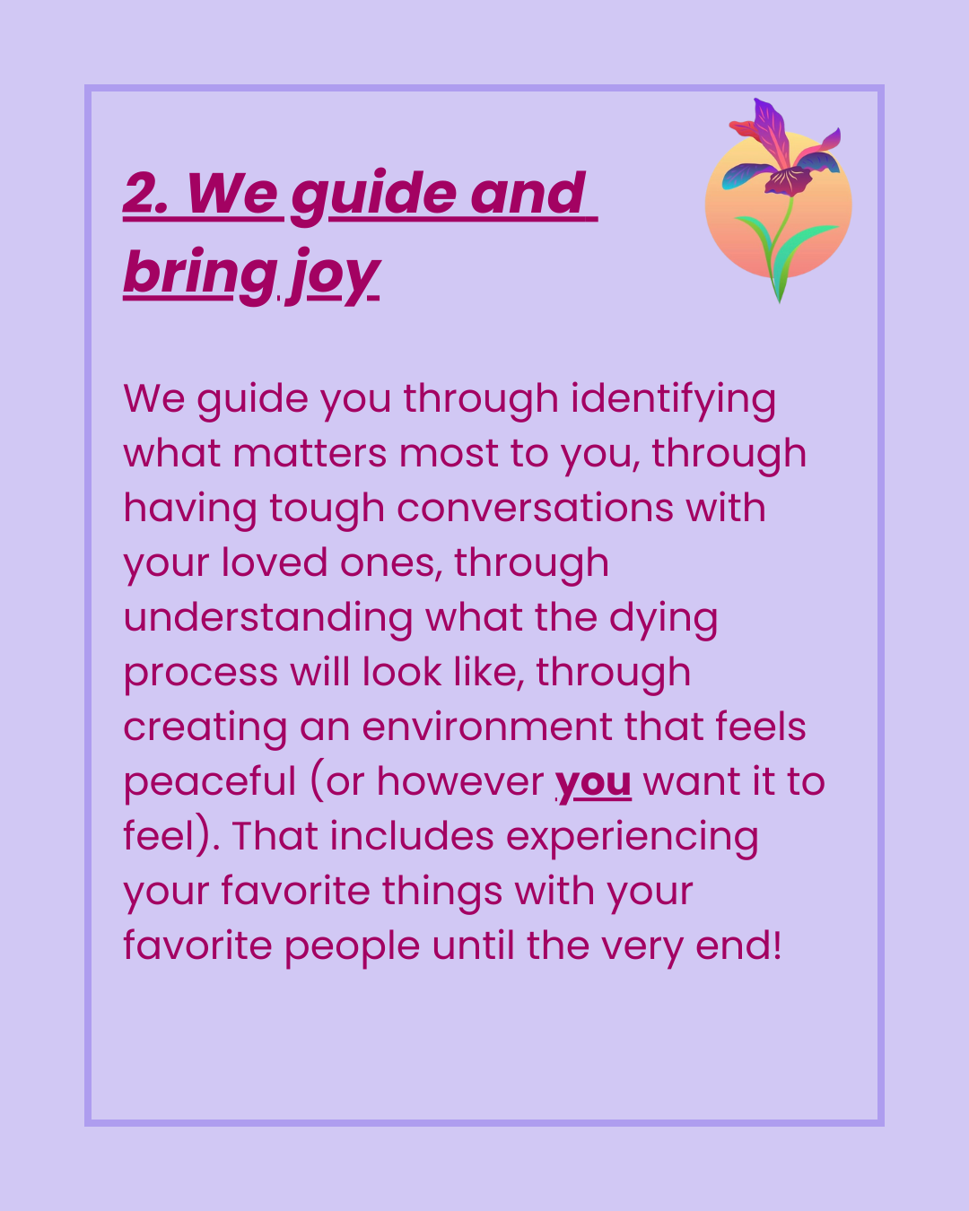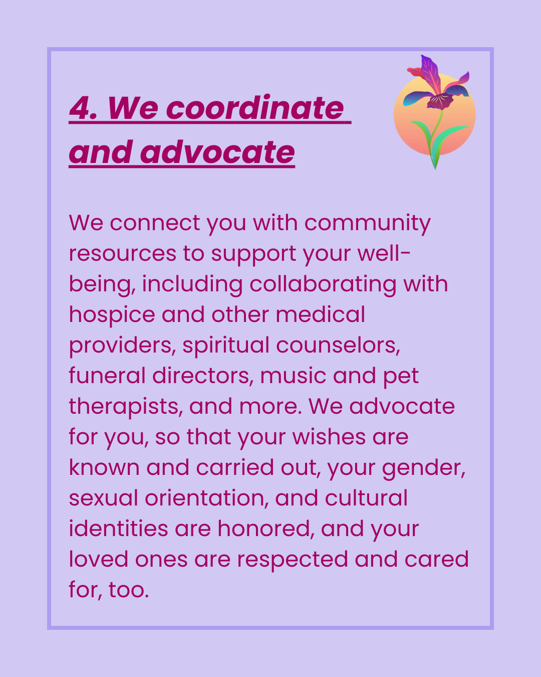 we are all temporary beings. and, in the end, we all deserve a companion who knows us and our loved ones deeply, advocates for our wishes, and brings us comfort. these truths are the heart of my offering to you.